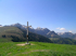 Antretteralm in einer spitzen Kurve nach Osten dreht, auf dem grasigen "Westgrat" 90 Hm hinauf zum Gipfelkreuz und südlich wieder